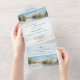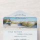 Elegant alles in einer tränenreichen Hochzeitseinladung mit Bildern eines Strandes mit Dünen und einer Laterne. Ideal für eine Feier an der Küste.