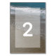 Dieses Stranddesign besticht durch eine sandige Küste. Das malerische Ambiente verbindet das blaue Meer, die weißen Wellen und den goldenen Sand. Der Text ist elegant gerahmt mit einem schlichten, undurchsichtigen Hintergrund. Die Hochzeit in Urlaubsort ist perfekt für eine Hochzeit im Sommer oder am Meer. Elegantes und romantisches Hochzeitsgeschenk am Strand begünstigen das Tag-Design mit modernen Elementen. Auch die passenden Hochzeitseinladungen und andere Schreibwaren sind verfügbar. Passen Sie die Anzahl an und erwerben Sie jede Tabellennummer individuell, je nachdem, wie viele Tischnummern Sie benötigen.