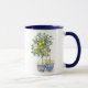 Kaffeemaschine mit Aquarellbildern eines blühenden Zitronenbaumes und üppigen Olivenbaum-Set in blauen und weißen Pflanzen. Auf beiden Seiten gedrucktes Bild. Zusätzliche Größen und Felgen- und Griffgrößen sind erhältlich.