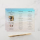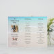 Beach-Szene Foto-Vorlage gefaltet Hochzeitsprogramm. Strandzeremonie-Programm, das nach dem Kauf zu dritt gefaltet werden soll. Fügen Sie ein spezielles Foto des Paares hinzu, das auf der Vorderseite der langen gefalteten Programme erscheint. Fügen Sie Ihre Formulierung einfach in drei Abschnitte über ein Bild mit Meer und Sand. Starfish in Braut und Bräutigam schmücken die Titelseite. Das gleiche türkisfarbene Wasser- und Strandbild bedeckt die Rückseite dieses Papiers.