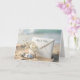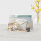 Ein Hochzeitsumschlag für Elfenbein ist mit einem Hauch von Babyatmen und Erholungen auf sandigem Strandgelände geschmückt, begleitet von einem Sand-Dollar und einem Seestern