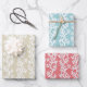 Diese hübschen, am Strand Packpapier-Blätter haben ein nahtloses Korallenriff Streifen Muster in weiß. Jedes Blatt hat eine andere koordinierende Farbe, die an das Meer erinnert: Beige Sand, helles Ozeanblau und Korallenrosa.
