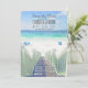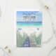 Dieses schöne Save the Date besticht durch eine elegante Aquarelllandschaft mit einem Holzsteg, der zum türkisfarbenen Wasser führt. Ideal für eine elegante Hochzeit am Strand.
