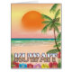 kuwait Beach Travel Plakat einer heißen Wüste mittleren Osten Sonnenuntergang im Abend, gibt es eine große schöne Palme im Vordergrund.