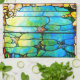 Ein Jugendstil-Fenster mit Buntglasfenstern aus Seestern unter dem Meer durch die Tiffany. In den Farben Blau, aquamarin, Gold und Braun. Ein elegantes Vintages Design.