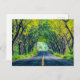Straße durch dichte Baumallee Feiertagspostkarte