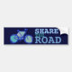 Ein blaues grafisches Fahrrad mit dem Text "SHARE THE ROAD"