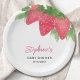 Diese Babyduschplatte ist mit einem Haufen von wasserfarbenen Erdbeeren und stilvollen Schriftzeichen geschmückt. Einfach anpassbar. Original Wasserfarbe © Michele Davies.