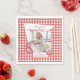 Erdbeerzeit! Niedliche Strawberry themed erste Geburtstagsfixings, ist ideal für ein Mädchen, das Süßbeeren Lieben. Gingham Hintergrund für ein Daunendeck im Bauernhof, das nur das Richtige für ein Party Kuchen, beerengedeckte Nachspeisen, frisches Obst und alles, was damit einhergeht. Wasserfarbene Früchte und winzige Herzakzente. Erdbeere rosa und weiß.