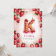 Feiern Sie einen besonderen Geburtstag mit dieser köstlichen Erdbeerbrille "K" cake Einladung! Dieses charmante Aquarelldesign besticht durch einen lustigen und festlichen Kuchen in Form des Buchstaben "K", der mit frischen Erdbeeren, rosa Eis und einer glühenden Geburtstagskandle dekoriert ist. Der weiche, rosa Hintergrund mit verstreuten Erdbeeren verleiht dem Ganzen eine spielerische Touch. Personalisieren Sie Ihre Kindernamen, -alter und -details für eine einmalige Geburtstagsfeier zum Thema Erdbeere. Ideal für Kinder, die fruchtige Party oder Geburtstage im Sommer Liebe haben!