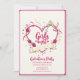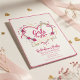 A bold Galentine's Day invitation featuring a decorative heart badge design with strawberries, champagne glasses, and a banner ribbon. The rich burgundy and gold color scheme creates an eye-catching look perfect for your friendship celebration. Fully customizable with your party information.