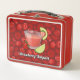 Ein Glas Erdbeere Daiquiri mit Grannisch. Nahtloser roter Hintergrund. Benutzerdefinierter Text auf beiden Seiten.