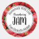 Dieser Aufkleber ist ein Etikett für Erdbeermarmelade.
