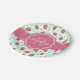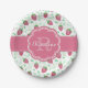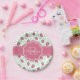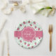 Rosa mit Monogramm Blumenschild auf einem skurrilen, femininen Erdbeermuster und einem waschfarbenen Muster. Individuelles Geschenk mit Namen und Monogramm Vorlage.