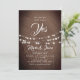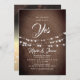 Elegante, moderne, trendige, rustikale Holz-Engagement-Party Einladung mit einfachen Kalligraphie-Skript, Saitenleuchten und Foto mit Monogramm auf der Rückseite.