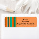 Diese Rücksendeadressen-Aufkleber haben ein Bauhaus-Design von Streifen in Orange und aquamarin.