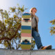 Streifen - Blau, Olivgrün, Rosa und Creme Skateboard