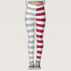 Die Leggings zeigen ein gestreiftes Muster vor einem lebendigen roten Hintergrund. Wählen Sie Ihre eigene Hintergrundfarbe!
