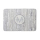 Diese metallische Monogrammbadematte des Imitats in den Tönen von Weiß und von silbrigen Graun fügt das überwundene Bling Ihrem Badezimmerraum hinzu. Das Mittelkreismedaillon mit einer hellgrauen Monogramminitiale und der Raum für einen Namen im dunkleren silbernen Grau können besonders angefertigt und personalisiert sein, wie Sie für eine vollständig kundenspezifische Badmatte wünschen. Kombinieren Sie diese Matte mit dem Zusammenbringen oder höfliche Badezimmerzusätze wie ein Zahnbürstehalter und ein Duschvorhang für Ihren eigenen unterscheidenden Blick im neuesten Trend der Mischmetalle mit Weiß.