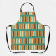 Diese Schürze hat ein modernes Design von horizontalen Linien aus senkrechten Streifen in Meeresboden, cremefarben, zwei Orangen und braun.