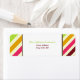 Ein Adressetikett mit rosa, grünen, goldenen, orangefarbenen und bordeauxfarbenen Mustern auf jeder Seite. Personalisieren Sie den grünen und bordeauxfarbenen Text in der Mitte mit Ihrem Namen und Ihrer Adresse. Achten Sie auf passende Einladungen für die Babydusche in Jill's Paperie.