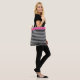Diese Tasche wird mit einem unterhaltsamen Schwarz/Weiß gestreiften Print-Design mit einem Hot Pink Farbtafel gezeigt. Mittlere Größe angezeigt. Hat schwarze Gurte. Passen Sie dieses Objekt an oder kaufen Sie es wie geplant.