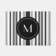 Stilvolles Design der Streifen in verschiedenen Grautönen, Schwarz und Weiß mit einem schwarzen Kreis. Der Anfangsbuchstabe des Monogramms im Kreis kann angepasst werden.