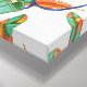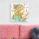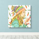 Stretch Leinwand mit einem Musikermädchen, das einen Hut trägt, umgeben von Federn.