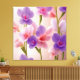 Abstrakte Wandkunst, violette Blumen und klare Vasen verleihen der Zimmerdekoration Akzente und Rhythmus.