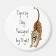 Originelles Kunstdesign eines dehnbaren Bengalischen Tigers auf einem anpassbaren runden Magneten von der Designerin Carolyn McFann von Two Purring Cats Studio für große Katzenfans.