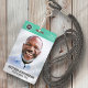 Ein modernes und einfaches Abzeichen, das nicht von den wichtigen Details ablenkt. Leicht zu lesen aus der Ferne. Fügen Sie ein individuelles Logo und Firmendetails hinzu. Fügen Sie den Namen, das Foto und den beruflichen Titel des Mitarbeiters hinzu. Die Bar der Farbe kann so angepasst werden, dass sie den offiziellen Farben des Unternehmens entspricht. Fügen Sie auf der Rückseite weitere Informationen hinzu, wie z. B. die Rücksendeadresse und die Mitarbeiternummer. Ideal für runde Logos.