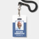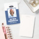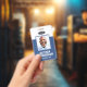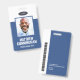 Ein modernes und einfaches Abzeichen, das nicht von den wichtigen Details ablenkt. Leicht lesbar aus der Ferne. Fügen Sie ein individuelles Logo und Firmendetails hinzu. Geben Sie den Namen, das Foto und den beruflichen Titel des Mitarbeiters ein. Die Bar der Farben kann so angepasst werden, dass sie den offiziellen Farben des Unternehmens entspricht. Fügen Sie auf der Rückseite weitere Informationen wie Rücksendeadresse und die Mitarbeiternummer hinzu. Ideal für ovale Logos.