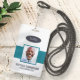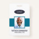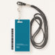 Ein modernes und einfaches Abzeichen, das nicht von den wichtigen Details ablenkt. Leicht zu lesen aus der Ferne. Fügen Sie ein individuelles Logo und Firmendetails hinzu. Fügen Sie den Namen, das Foto und den beruflichen Titel des Mitarbeiters hinzu. Die Bar der Farbe kann so angepasst werden, dass sie den offiziellen Farben des Unternehmens entspricht. Fügen Sie auf der Rückseite weitere Informationen hinzu, wie z. B. die Rücksendeadresse und die Mitarbeiternummer. Ideal für ovale Logos.