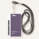 Ein modernes und einfaches Abzeichen, das nicht von den wichtigen Details ablenkt. Leicht lesbar aus der Ferne. Fügen Sie ein individuelles Logo und Firmendetails hinzu. Geben Sie den Namen, das Foto und den beruflichen Titel des Mitarbeiters ein. Die Bar der Farben kann so angepasst werden, dass sie den offiziellen Farben des Unternehmens entspricht. Fügen Sie auf der Rückseite weitere Informationen wie Rücksendeadresse und die Mitarbeiternummer hinzu. Ideal für ovale Logos.