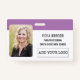 Personalisieren Sie diese horizontalen Mitarbeiter-ID-Abzeichen mit einem Mitarbeiter-Foto und -Namen, zusammen mit mehreren benutzerdefinierten Textfeldern und dem Hinzufügen Ihres Logos. Der Titel oder die Rolle erscheint ganz unten in fett gedruckter schwarzer Schrift, um leicht zu erkennen. Passen Sie Ihren Barcode an und geben Sie Informationen oder andere Details auf der Rückseite zurück.