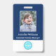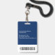 Erstellen Sie Ihren eigenen, personalisierten, haltbaren PVC-Kunststoff, wird nicht verblassen oder reißen, cool moderne moderne marineblaue blau und weiß, Name Foto ID Abzeichen, mit Auswahl der Anbaugeräte - Lanyard, Metallklammer, Retraktable, oder keine. Geben Sie zum Personalisieren den Namen des Mitarbeiters/der Mitarbeiter/Führungskraft, deren Benennung und alle weiteren Informationen wie Mitarbeiterkennung, Ausstellungsdatum und Ablaufdatum des Abzeichens ein, wenn die Rückgabe an & die Adresse, etc. verloren geht. Als Nächstes fügen Sie das Foto der Mitarbeiter / Mitarbeiter / Führungskraft, fügen Sie das Unternehmen / Unternehmen Logo, und fügen Sie den Strichcode. Während Sie schreiben/gestalten, können Sie überall eine Vorschau Ihres Abzeichens sehen. Ideal für kleine Unternehmen, Unternehmen, Schule, Restaurant, Büro, Konzert, Einzelhandel, Krankenhaus, Klinik, und für Mitarbeiter, Personal, Arzt, Lehrer, Student.
