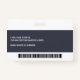 Ein modernes und einfaches Abzeichen, das nicht von den wichtigen Details ablenkt. Leicht zu lesen aus der Ferne. Fügen Sie ein individuelles Logo und Firmendetails hinzu. Fügen Sie den Namen, das Foto und den beruflichen Titel des Mitarbeiters hinzu. Die Bar der Farbe kann so angepasst werden, dass sie den offiziellen Farben des Unternehmens entspricht. Fügen Sie auf der Rückseite weitere Informationen hinzu, wie z. B. die Rücksendeadresse und die Mitarbeiternummer.