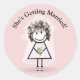 Strichfigur-Mädchen in Sneakers auf rosa Runder Aufkleber