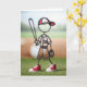 Ein als Baseballspieler gekleideter Strichfigur steht auf dem grünen Gras eines Baseballfeldes und hält einen Schläger und Handschuh zum Baseballgeburtstag. Alle Texte können geändert werden.