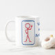 Dies ist eine morgendliche "Pre-coffee" 'tude" Tasse mit einem Strichmännchen, das den Mittelfinger auf jeder Seite gibt, eine in Rot und eine in Blau. Es kann mit einem Namen und/oder Ausdrücken personalisiert werden.