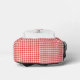 Niedliches Strichmännchen mit einem roten und weißen Gingham-Kleid, Perlenhalskette, Sneakers und einem Strauß von Molkereien.