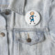 Ein Jungen-Strichmännchen-Fußballspieler mit Fußbalball und blauer Uniform auf einem kundengerechten Strichmännchen trägt Themaknopf zur Schau.