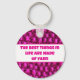 Lass der Welt mit diesem Schlüsselanhänger mit knallrosa gestrickten Garnen und "The Best Things in Life Are Made Of Yarn" über deine Liebe des Garns Bescheid. Die Rückseite weist das gleiche rosa Strick-Muster Original Foto - C. McGouldrick auf