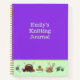 Lila Strickjournal mit eigenem Titel vorne. Mit der optionalen Auswahl an Graphen kann eine Strickerin auf jeder Seite ihre eigenen Farbbilder kreieren. Eine gute Möglichkeit, maßgeschneidertes Fair Isle oder Stranded Stricken zu üben. Die Grafiken sind nicht speziell Strickgröße, aber ein Anfänger kann die Übung genießen. Oder wählen Sie etwas Anderes mit Zeilen, oder Skizzenbuchseiten. Nadeln und Garne mit Körben bilden einen Rand am Boden. Notebooks sind in drei Größen erhältlich.