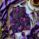 Rich jewel-tone purples and delicate botanical details frame your wedding information beautifully, creating a dramatic yet timeless aesthetic perfect for formal, black-tie, evening, or destination weddings.