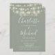 Mit hübschen Saitenlichtern und prächtigen Stilbezeichnungen kann diese elegante und grüne Hochzeitseinladung mit all Ihren besonderen Informationen zum Hochzeitstag auf der Rückseite personalisiert werden, inklusive UAWG, Unterkunft und weiteren Details. Entwickelt von Thisisnotme©