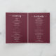 Ce programme de mariage plié bordeaux est parfait pour un mariage classique. Le design est orné de superbes lampes à cordes peintes à la main dans un arrière - plan bordeaux. Incluez un devis ou un court message, une commande de service, une fête de mariage et un message de remerciement.
