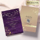 Diese elegante rustikale Hochzeitseinladung verbindet Stallholztexturen mit lila Farbtönen, mit echten goldgelben Linienleuchten und Vintag vergoldeten Blumenspitzen. Die einfache Kalligraphie verleiht der Touch der Eleganz, während der QR-Code auf der Rückseite ein nahtloses UAWG bietet und Landcharme mit modernem Komfort verbindet.
