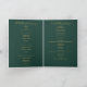 Smaragdgrün und goldene Signatur Drehbuch Hochzeitsprogramm mit hübschen Saitenleuchten und schicke moderne Typografie. Dieses stilvolle Hochzeitsprogramm kann mit Ihren speziellen Informationen zum Hochzeitstag personalisiert werden. Entwickelt von Thisisnotme©