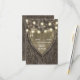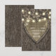 String Lights + Oak Tree Barke Wedding RSVP Cards - mit geschnitztem Herz, Lichtern an der Saite und winzigen, an der Spitze verstreuten binkligen Lichtern. Im Hintergrund befindet sich eine Eichenbarke. Die vollständige Auflistung finden Sie unten.